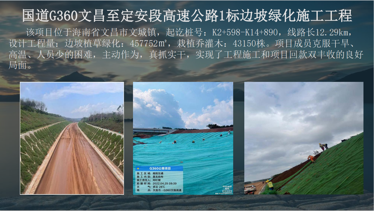 國道G360文昌至安定段高速公路1標邊坡綠化工程